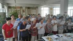 隨后,我所離退休夕陽紅合唱團成員首先演唱了《共筑中國夢》和《龍文》兩首歌曲,拉開了紀念活動的詩歌演唱序幕。離退休職工通過詩朗誦《贊偉大的中國共產黨》、《黨在我心中》、《十六字令.贊》,以及歌曲《黨啊,親愛的媽媽》、《太陽最紅,毛主席最親》等16首詩與歌,把紀念活動推向高潮。