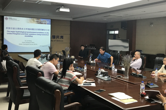 訪問期間,王磊研究員與水文水資源學科組科研人員和研究生就吉林西部查干湖濕地水文-水質-水生態過程監測和模擬、三江平原地表水地下水交互作用及模擬等領域開展了一系列專題學術研討,并對研究生的科研工作和聯合培養給予了指導,為聯合申請中英合作項目和研究生培養奠定了良好基礎。同時,希望將來我所能與英國地調局簽署合作協議框架,推動長期、實質性的交流與合作研究。