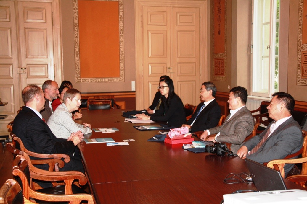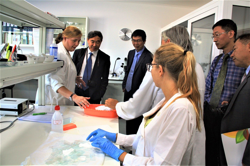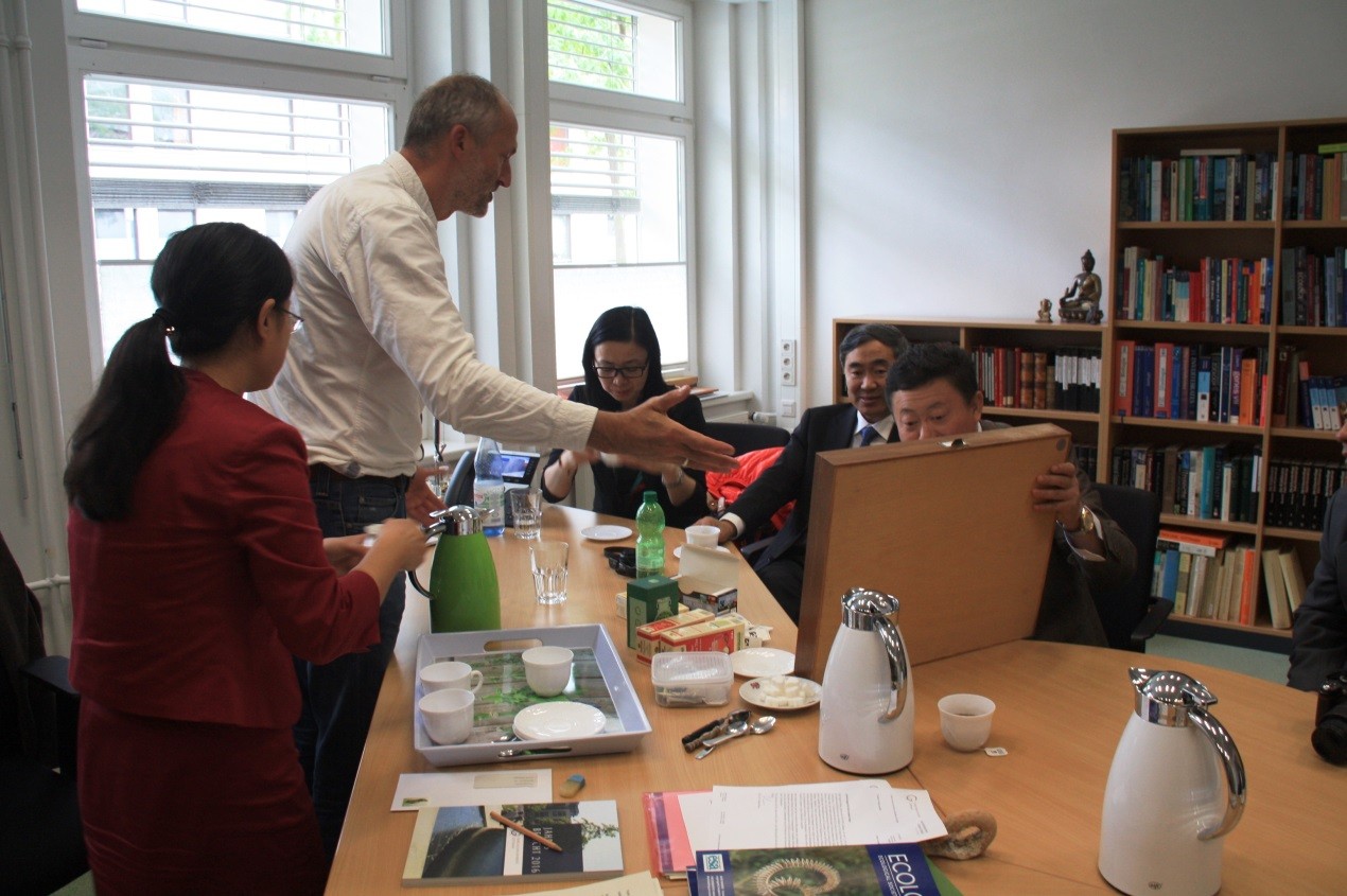 9月20日-9月21日,代表團(tuán)一行應(yīng)哥廷根大學(xué)校長Ulrike Beisiegel邀請,訪問了德國哥廷根大學(xué),并與動物生態(tài)研究所、林業(yè)科學(xué)學(xué)院等研究機(jī)構(gòu)負(fù)責(zé)人及相關(guān)科學(xué)家進(jìn)行了深入交流。訪問期間,何興元所長率團(tuán)與哥廷根大學(xué)校長Ulrike Beisiegel教授進(jìn)行了會談。會談由哥廷根大學(xué)國際處處長UweMuuss教授主持,動物生態(tài)研究所所長Stefan Scheu教授和我所洪堡學(xué)者孫新博士參加會談。雙方介紹了各自單位概況,Beisiegel校長特別強(qiáng)調(diào)了近年來該校與中國開展的廣泛科技合作,期待未來能在生態(tài)保護(hù)、環(huán)境科學(xué)等領(lǐng)域與我所開展實質(zhì)性合作與交流;雙方也就青年人才培養(yǎng)、項目合作、聯(lián)合培養(yǎng)研究生等方面達(dá)成了初步意向。會談結(jié)束后,在動物生態(tài)研究所所長Stefan Scheu教授的陪同下,代表團(tuán)訪問了動物生態(tài)研究所,Stefan Scheu教授高度重視與我所土壤動物研究領(lǐng)域的合作交流,并愉快地接受了我所的回訪邀請。