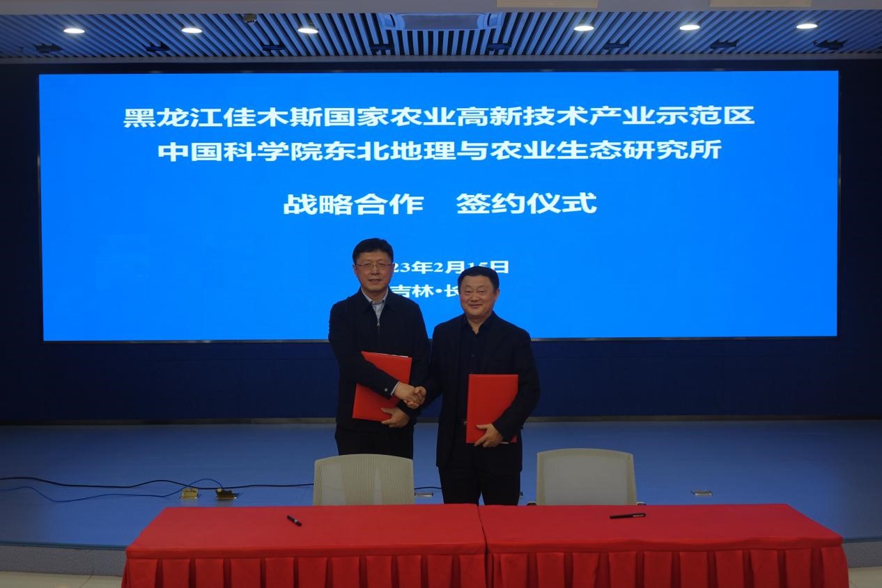 佳木斯國家農高區建設領導小組副組長李源波一行調研東北地理所并簽署合作協議