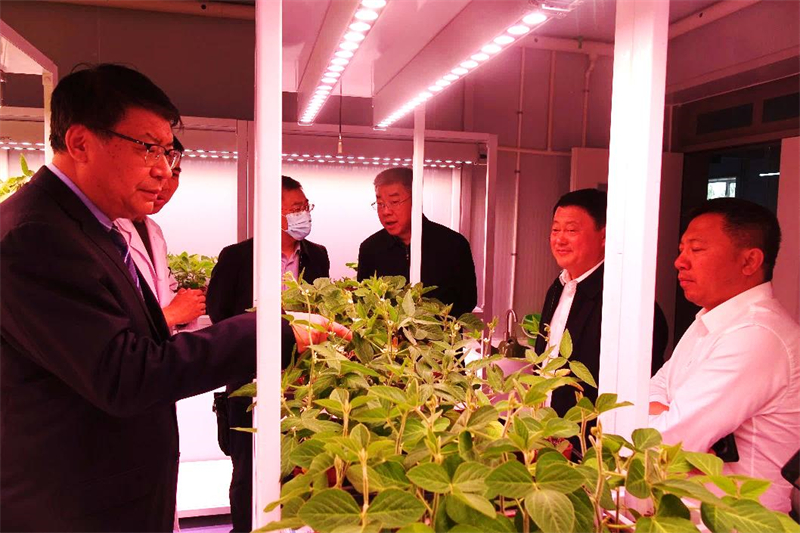 調研組首先深入到東北亞種質資源研究中心,大豆分子設計育種重點實驗室程志遠博士介紹了實驗室的組織構架、主要研究方向、人才隊伍概況,以及在國內率先建成大豆分子設計育種技術體系和最大容量的大豆基因突變體庫的情況,還詳細介紹了吉林省最大規模的高通量自動化智能作物表型采集平臺,匯報了大豆新品種的選育和示范推廣有力支撐國家大豆產能提升工程等工作進展。