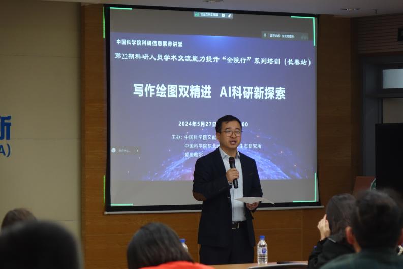 ????2024年5月27日,由中國(guó)科學(xué)院文獻(xiàn)情報(bào)中心、中國(guó)科學(xué)院東北地理與農(nóng)業(yè)生態(tài)研究所主辦,科研計(jì)劃處和人事教育處共同承辦的第22期科研人員學(xué)術(shù)交流能力提升“全院行”系列培訓(xùn)活動(dòng)在長(zhǎng)春召開(kāi),主題為“寫(xiě)作繪圖雙精進(jìn)?AI科研新探索”。學(xué)術(shù)講座線(xiàn)上線(xiàn)下同步進(jìn)行,共計(jì)100余名科研人員及研究生參加。會(huì)議由中國(guó)科學(xué)院文獻(xiàn)情報(bào)中心咨詢(xún)服務(wù)部副主任閆亞飛主持。