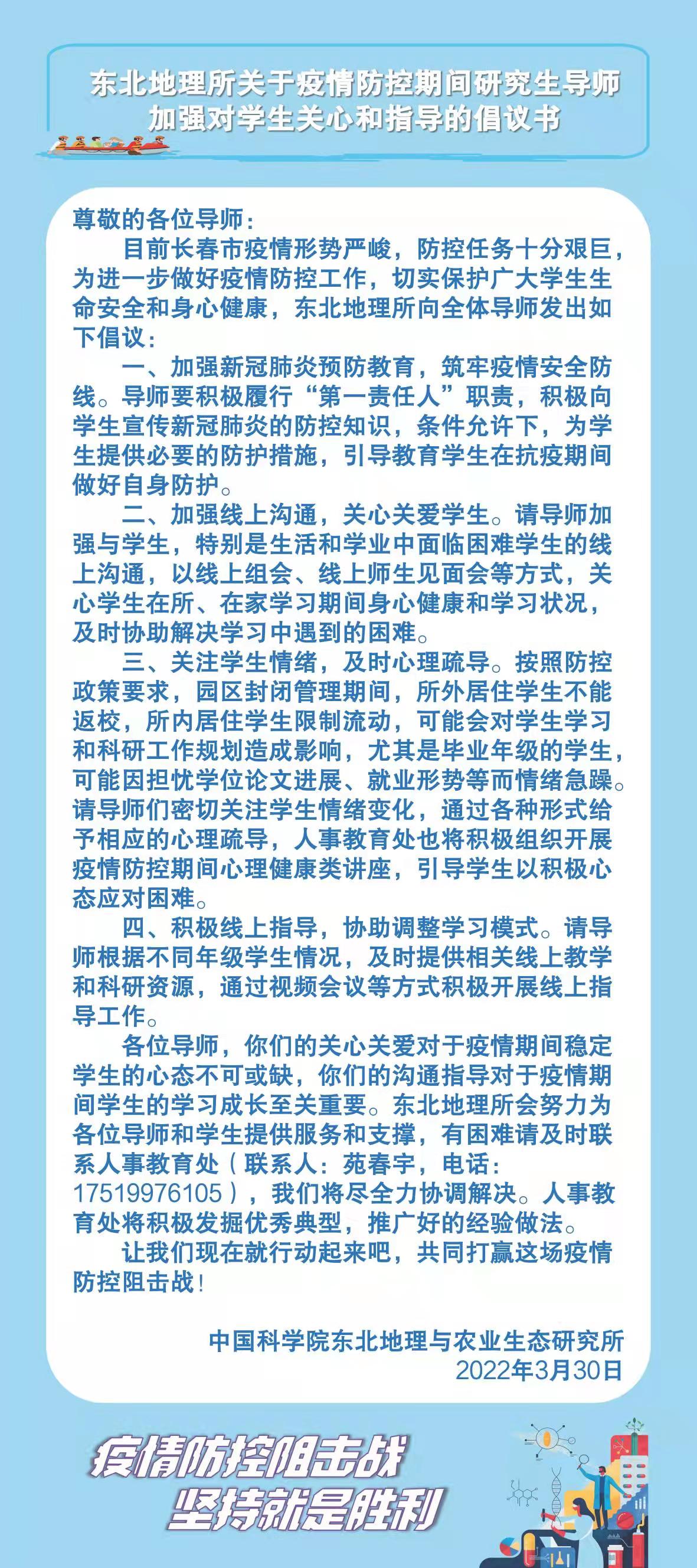 東北地理所關于疫情防控期間研究生導師加強對學生關心和指導的倡議書