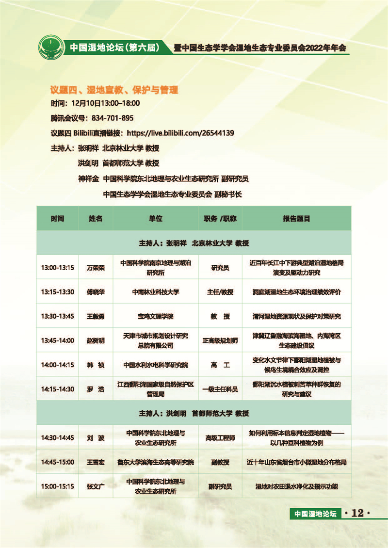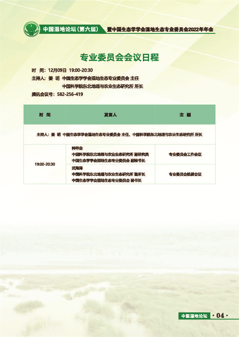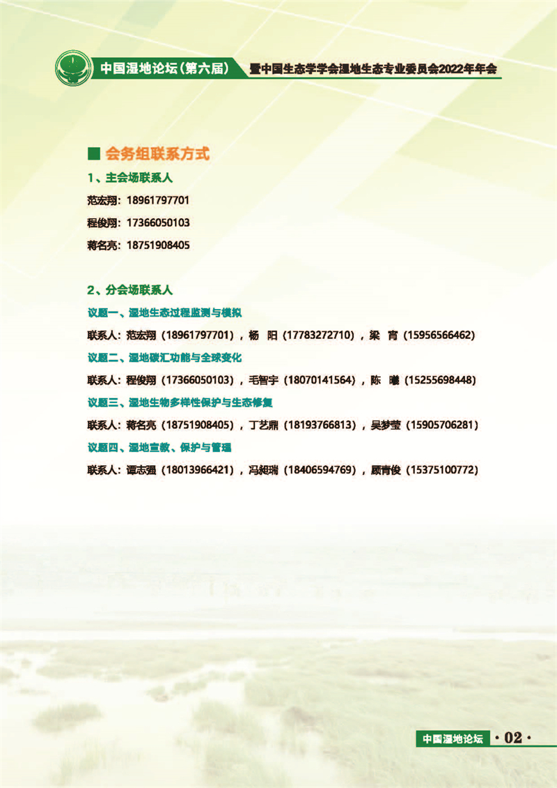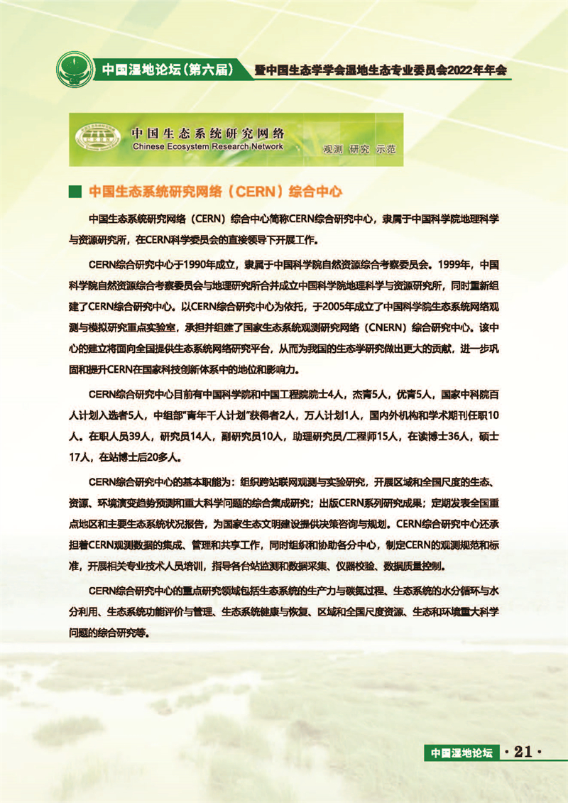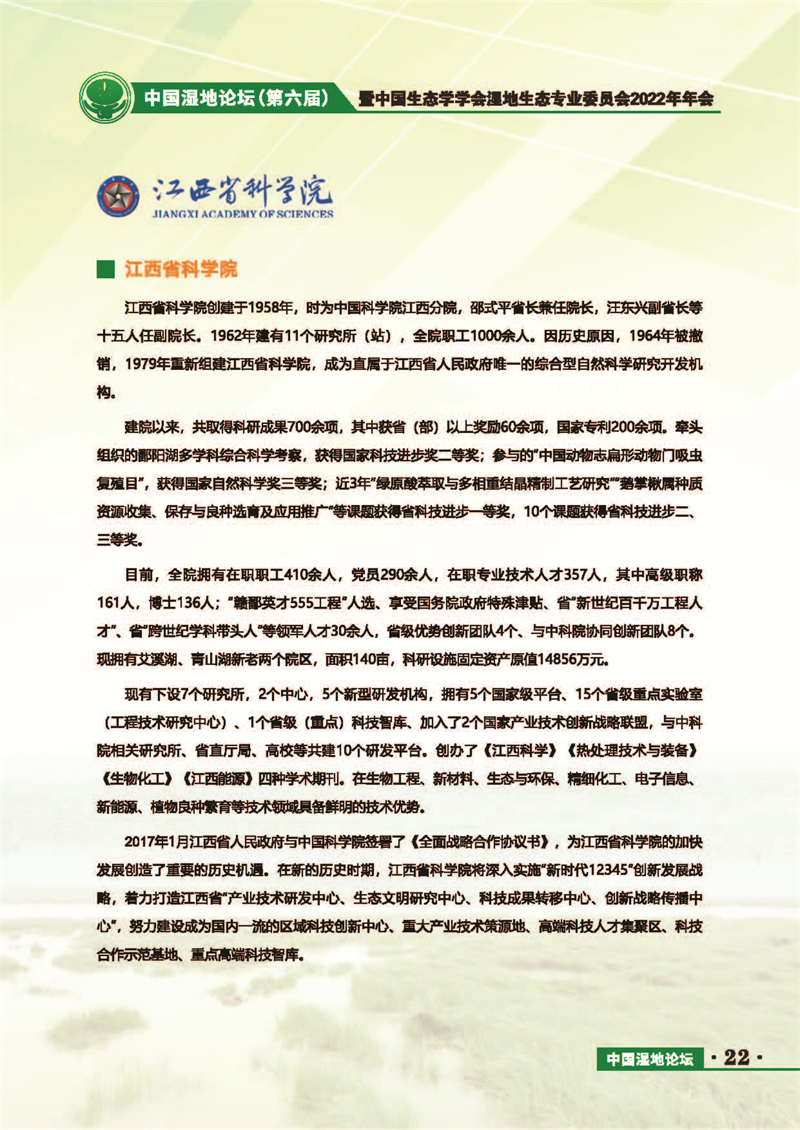 中國濕地論壇(第六屆)暨中國生態學學會濕地生態專業委員會2022年年會 會議手冊