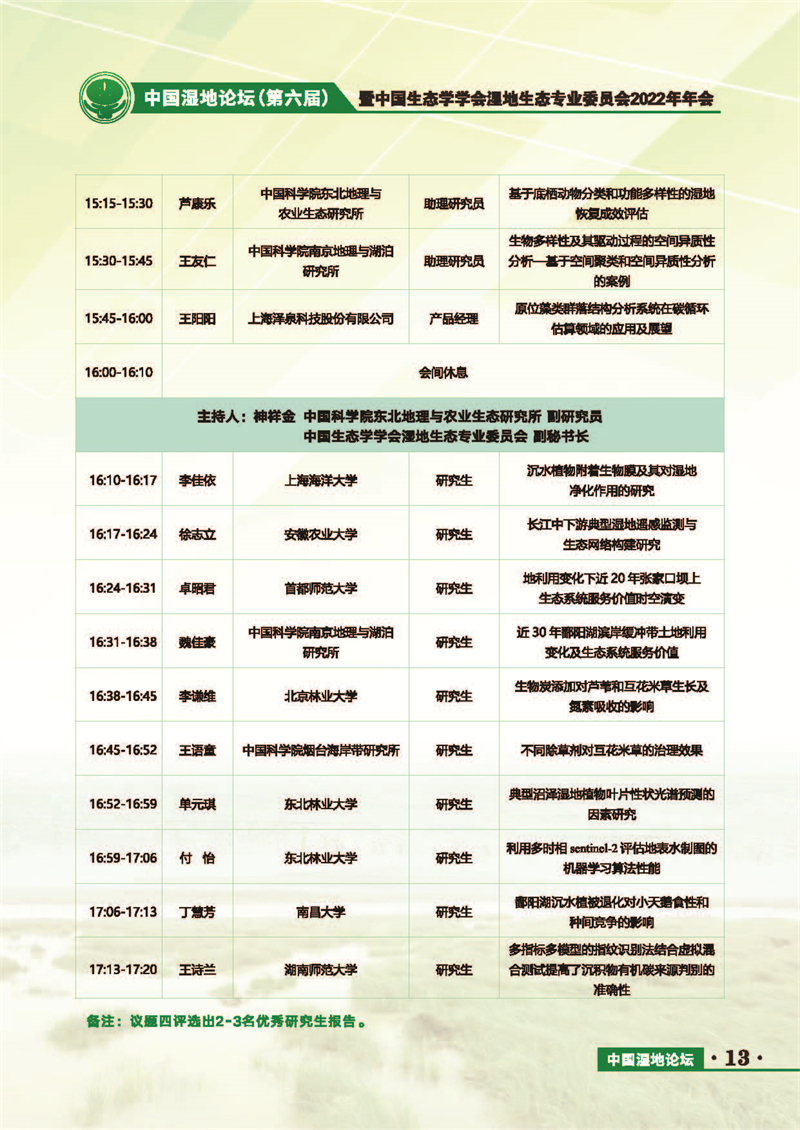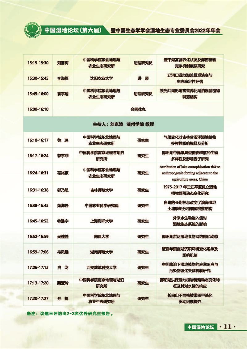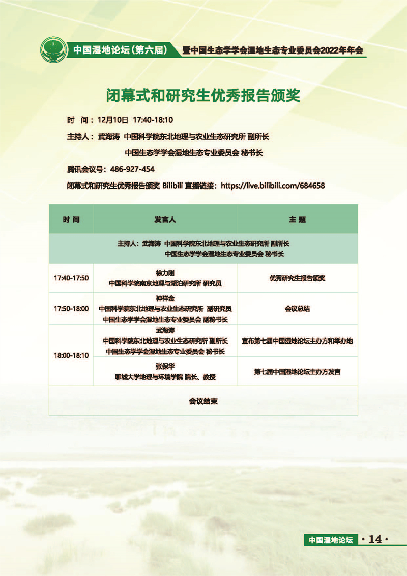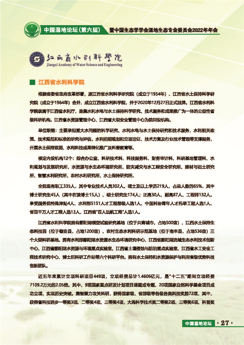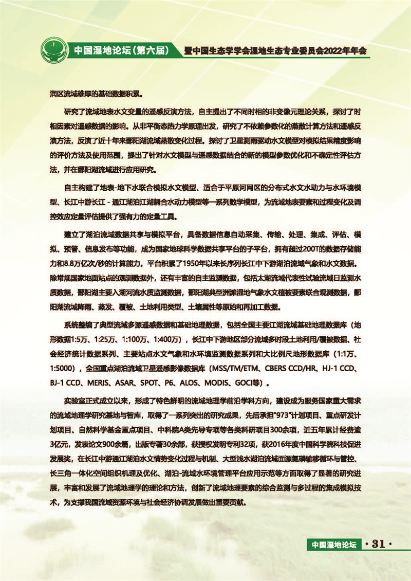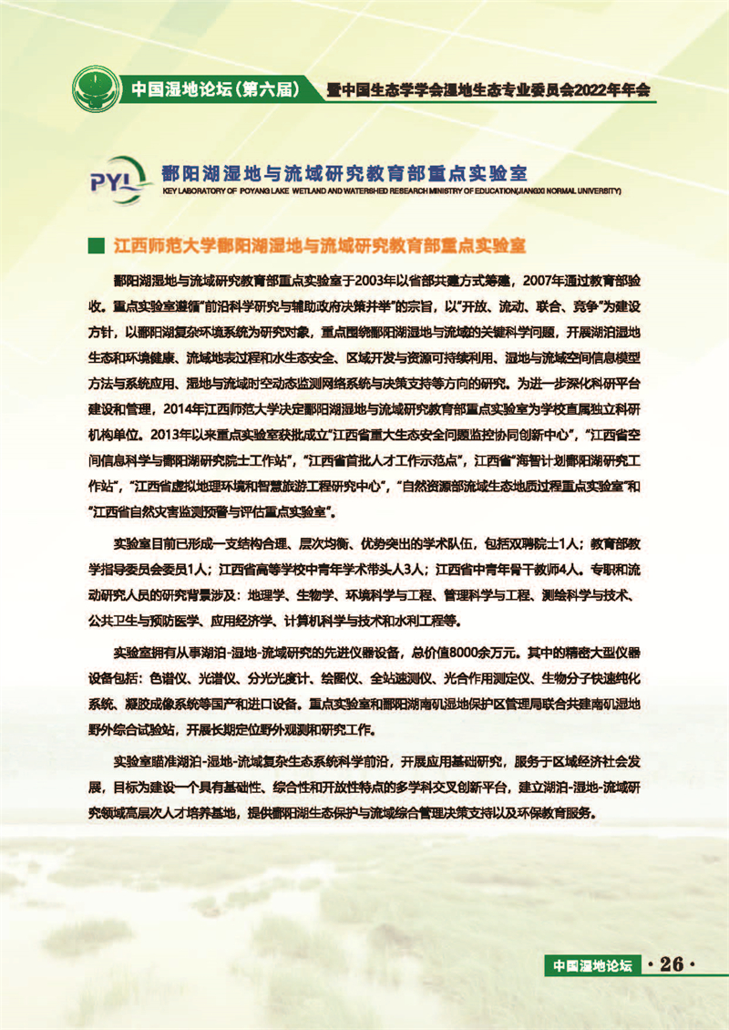 中國濕地論壇(第六屆)暨中國生態學學會濕地生態專業委員會2022年年會 會議手冊