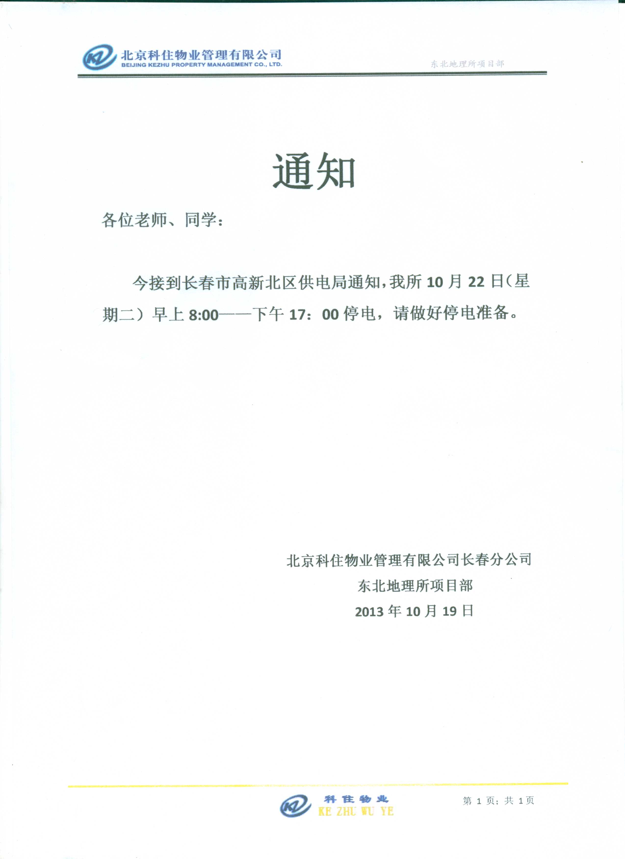 供電局停電通知