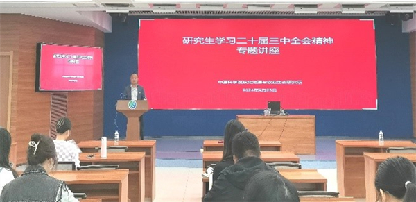 本次主題黨團日活動邀請了中共吉林省委黨校馬克思主義學院副院長鄭雪副教授,以《進一步全面深化改革推進中國式現(xiàn)代化---黨的二十屆三中全會精神解讀》為題,深入的為全所學生黨員、團員解讀了黨的二十屆三中全會精神。